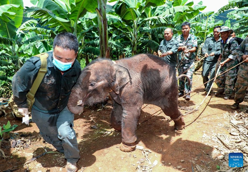 Wildlife conservation workers rescue Asian elephant "Longlong" in Xishuangbanna Dai Autonomous Prefecture, southwest China's Yunnan Province in July of 2021. (Photo/Xinhua)