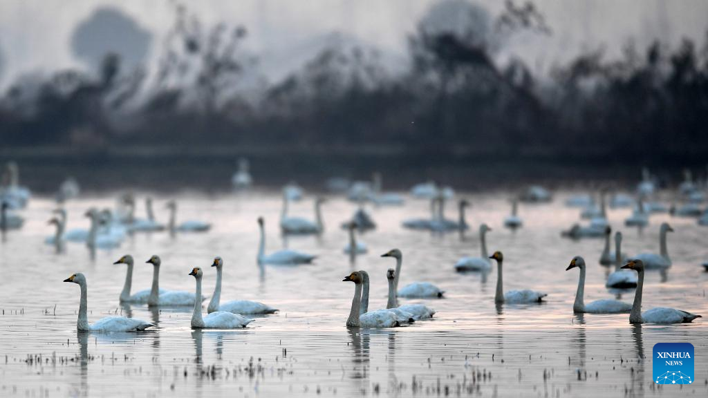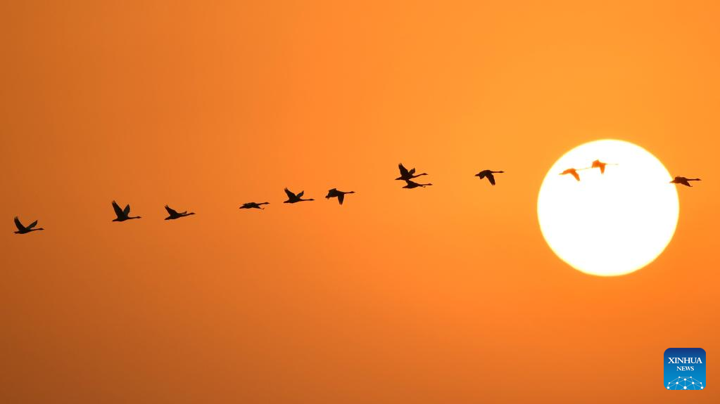 Wintering migrant birds arrive at Dongting Lake wetland in C China