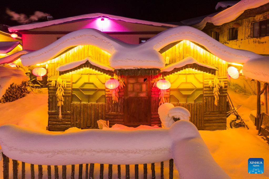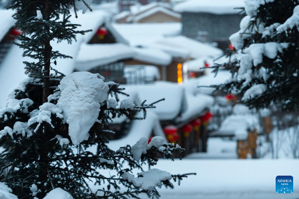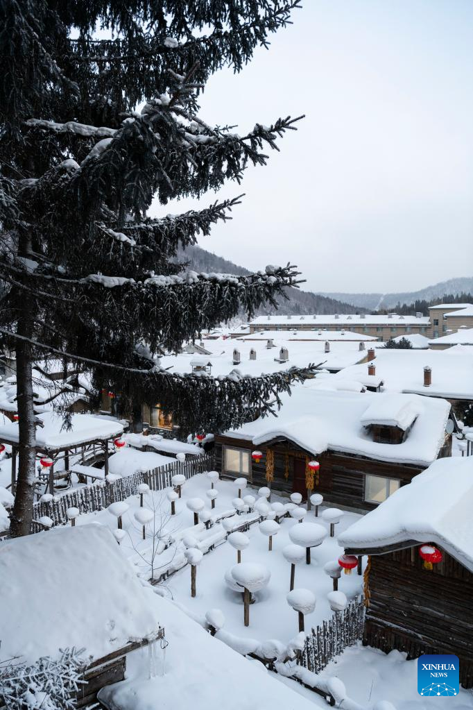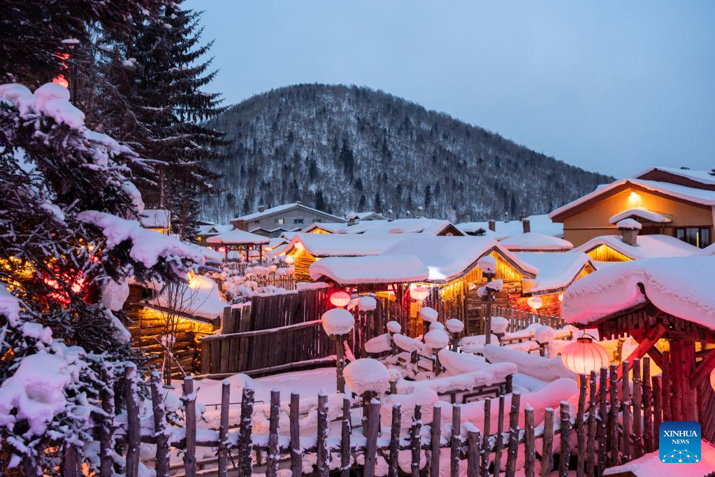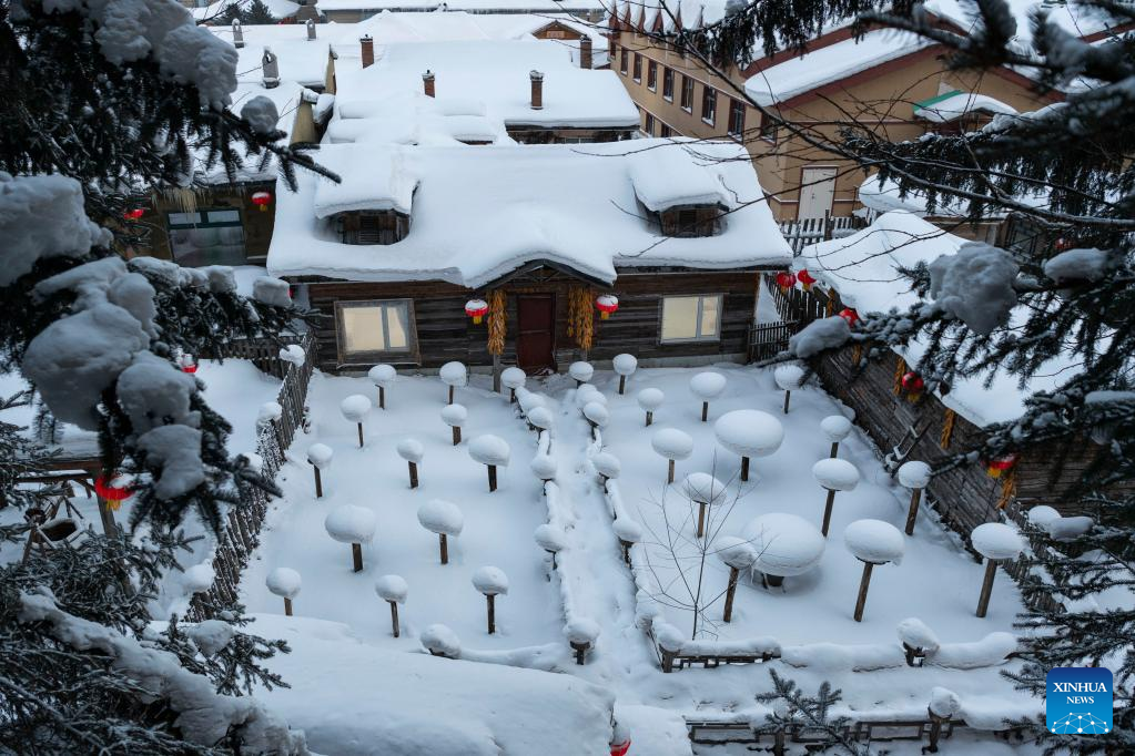 This photo taken on Dec. 14, 2022 shows a view of the Snow Town scenic spot in Hailin City in northeast China's Heilongjiang Province. The Snow Town scenic spot officially opened recently. Enjoying a seven-month snow season, it has become an attraction for tourists for years. (Xinhua/Xie Jianfei)
