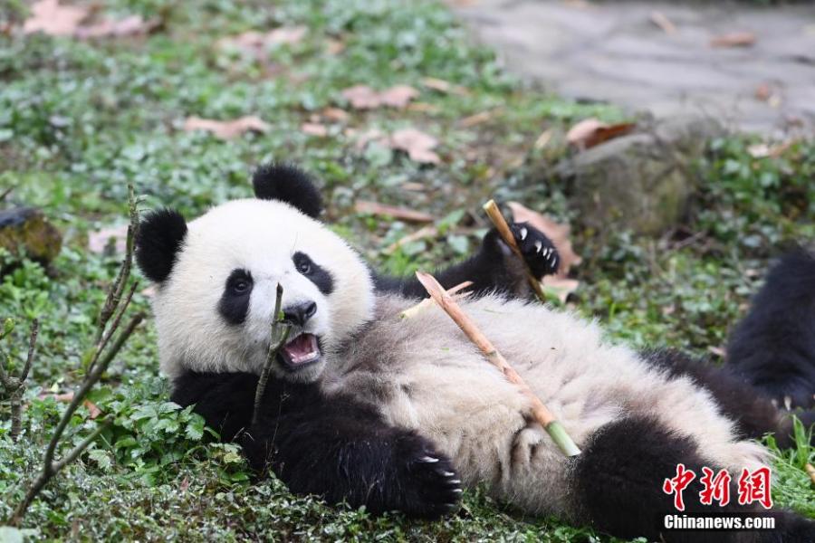 A giant panda plays at the Dujiangyan base of the China Conservation and Research Center for Giant Panda, southwest China's Sichuan Province, Dec. 15, 2022. (Photo: China News Service/An Yuan)