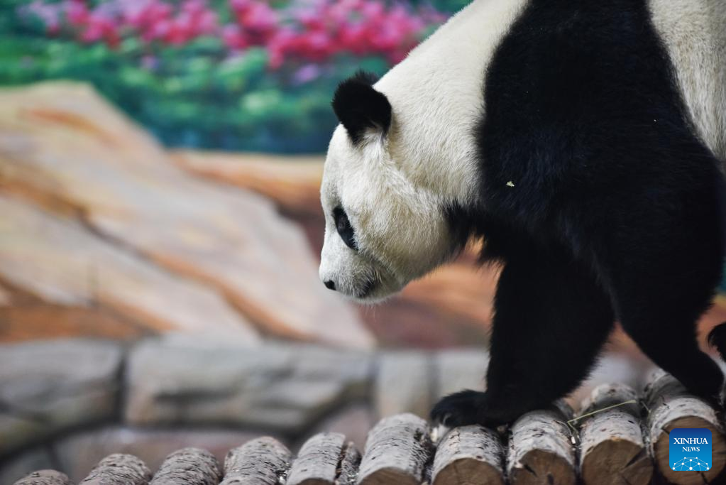 A giant panda is seen at Xining Panda House in Xining, capital city of northwest China's Qinghai Province, Dec. 22, 2022. (Xinhua/Wu Gang)