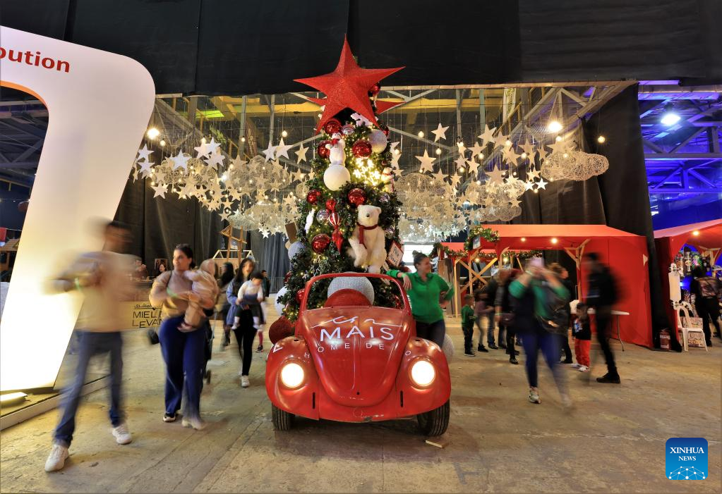 A Christmas tree in a small car is seen at a Christmas market in Beirut, Lebanon, on Dec. 23, 2022. (Xinhua/Liu Zongya)