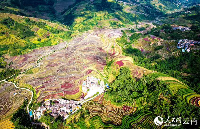 Photo shows the colorful terraced fields in Lagu village, Lyuchun county, southwest China’s Yunnan Province, October 2022. (Photo/Li Jiandong)