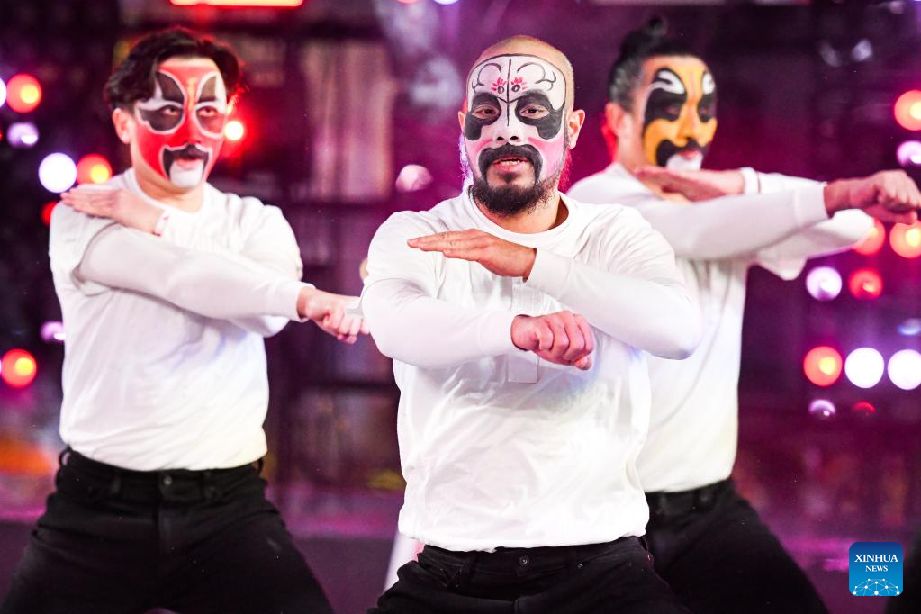 Artists from China's Hong Kong Special Administrative Region perform during the Times Square New Year's Eve celebration in Manhattan, New York, the United States, Dec. 31, 2022. (Photo by Ziyu Julian Zhu/Xinhua)