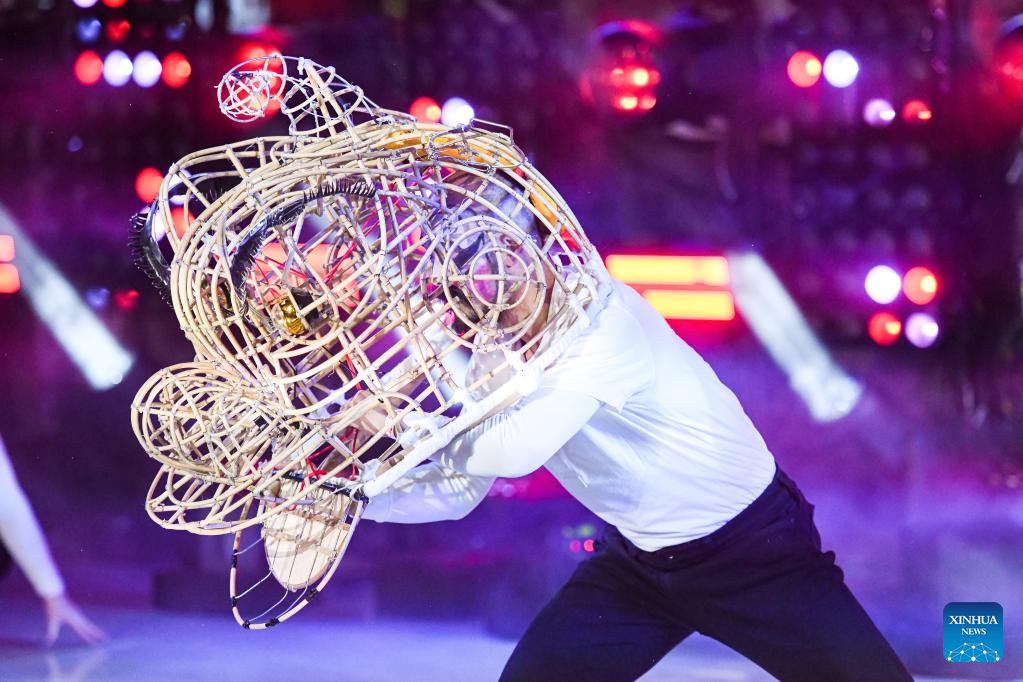 An artist from China's Hong Kong Special Administrative Region performs during the Times Square New Year's Eve celebration in Manhattan, New York, the United States, Dec. 31, 2022. (Photo by Ziyu Julian Zhu/Xinhua)