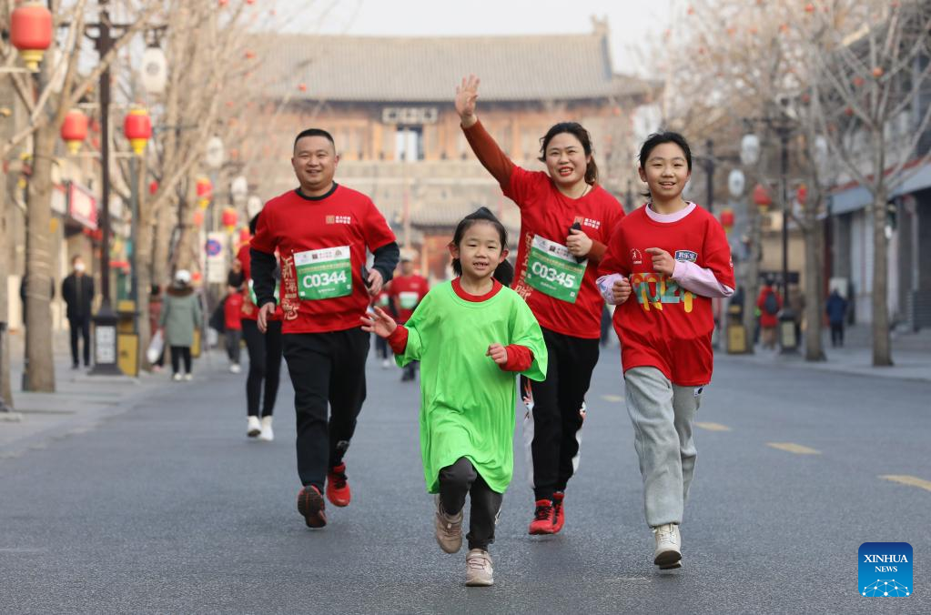 People take part in a running activity to celebrate the New Year in Shijiazhuang, north China's Hebei Province, Jan. 1, 2023. (Photo by Liang Zidong/Xinhua)