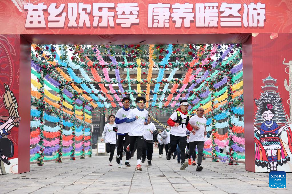 People take part in a running activity to celebrate the New Year in Danzhai County of Qiandongnan Miao and Dong Autonomous Prefecture, southwest China's Guizhou Province, Jan. 1, 2023. (Photo by Huang Xiaohai/Xinhua)