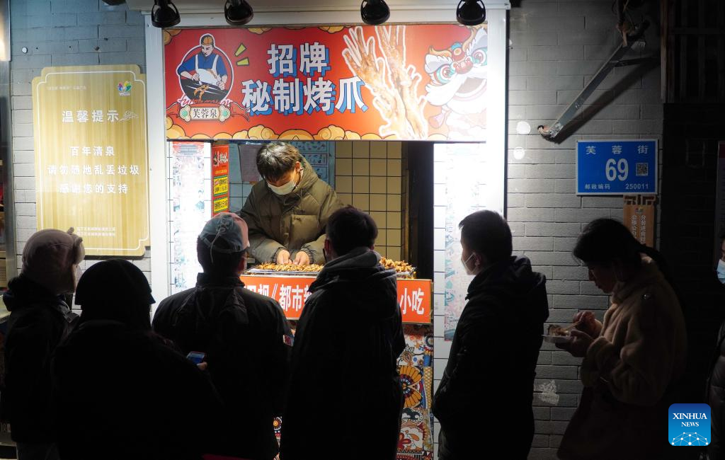 People buy food on Furong Street in Jinan, east China's Shandong Province, Jan. 2, 2023. (Xinhua/Xu Suhui)