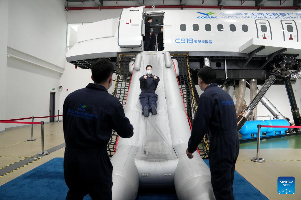 Flight attendants of China Eastern Airlines have attended intensive training by COMAC Shanghai Aircraft Customer Service Co., Ltd. in Shanghai, east China for the C919 to ensure smooth operation of the aircraft on Friday.
