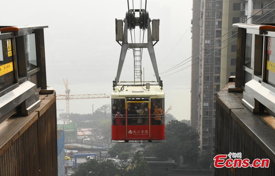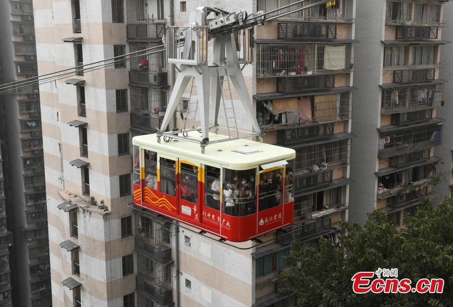 The 1,166-meter long cable car, also known as the “First Air Corridor across the Yangtze River”, or the “Air Bus in Mountain City”, resumed operation on Monday after maintenance.