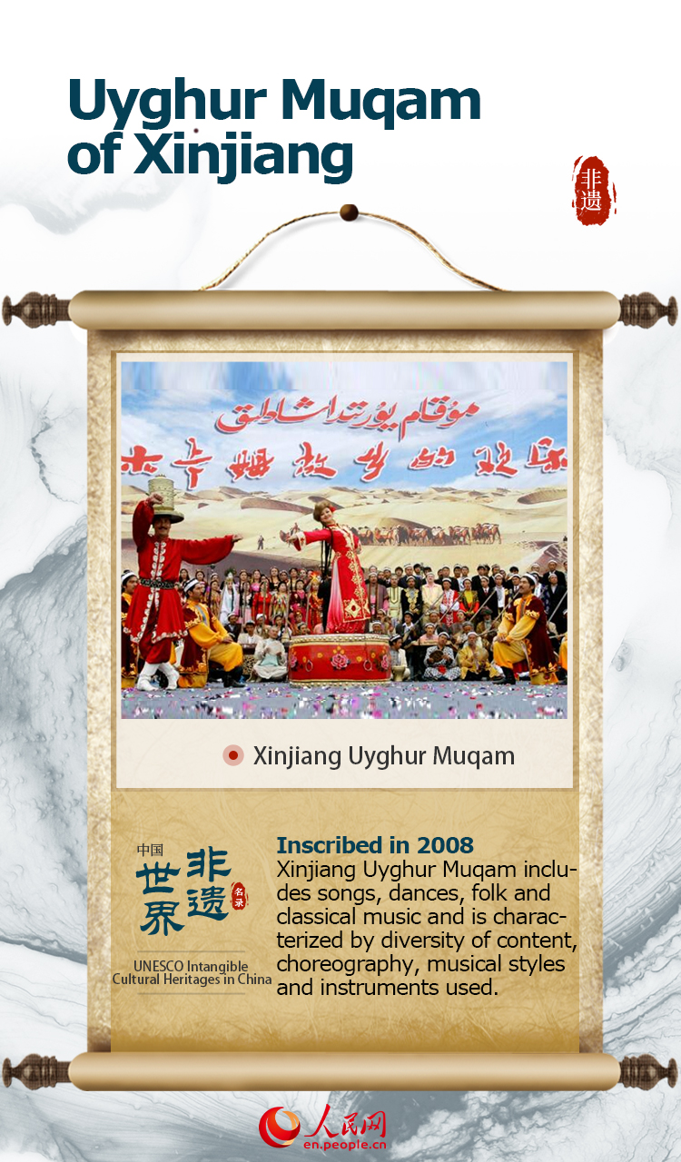 The item “Uyghur Muqam of Xinjiang” was inscribed on UNESCO's Representative List of the Intangible Cultural Heritage of Humanity in 2008.