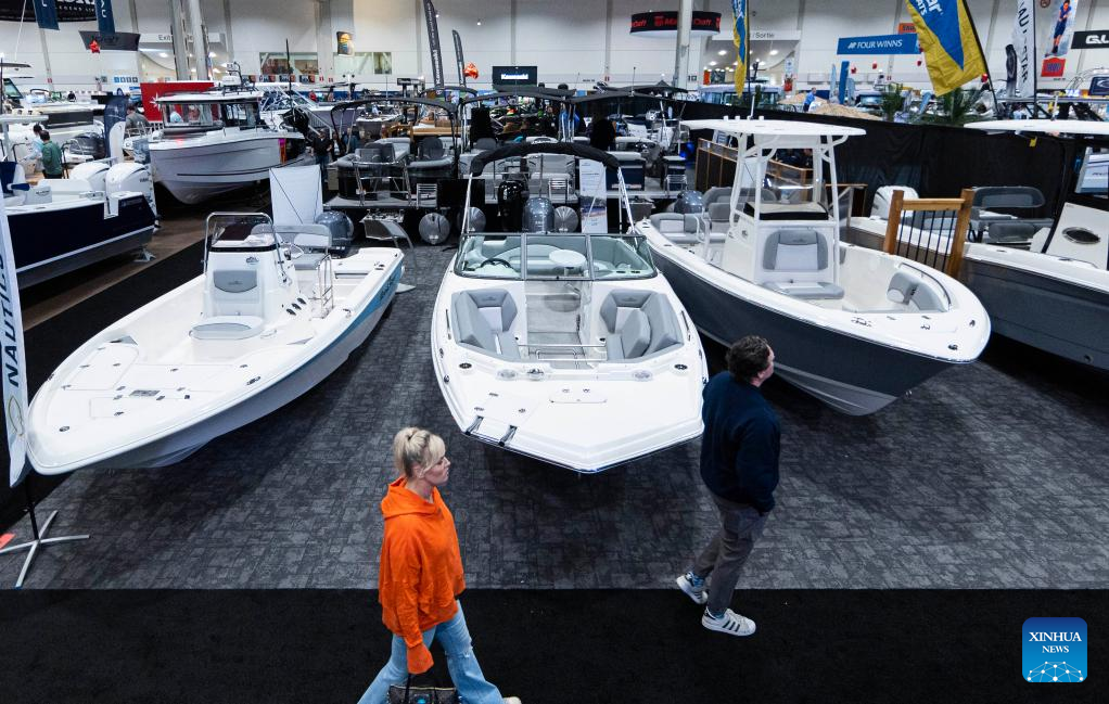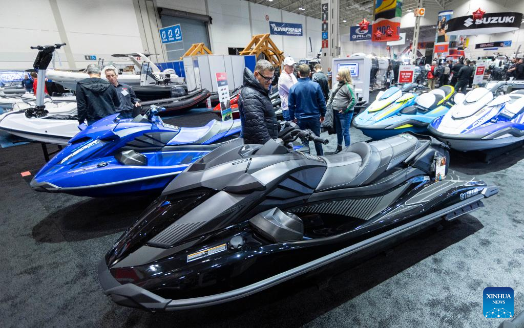 People visit the 2023 Toronto International Boat Show in Toronto, Canada, on Jan. 20, 2023. With hundreds of boats of all sizes and lifestyles from more than 450 exhibitors from across the world, the ten-day show kicked off here on Friday. (Photo by Zou Zheng/Xinhua)