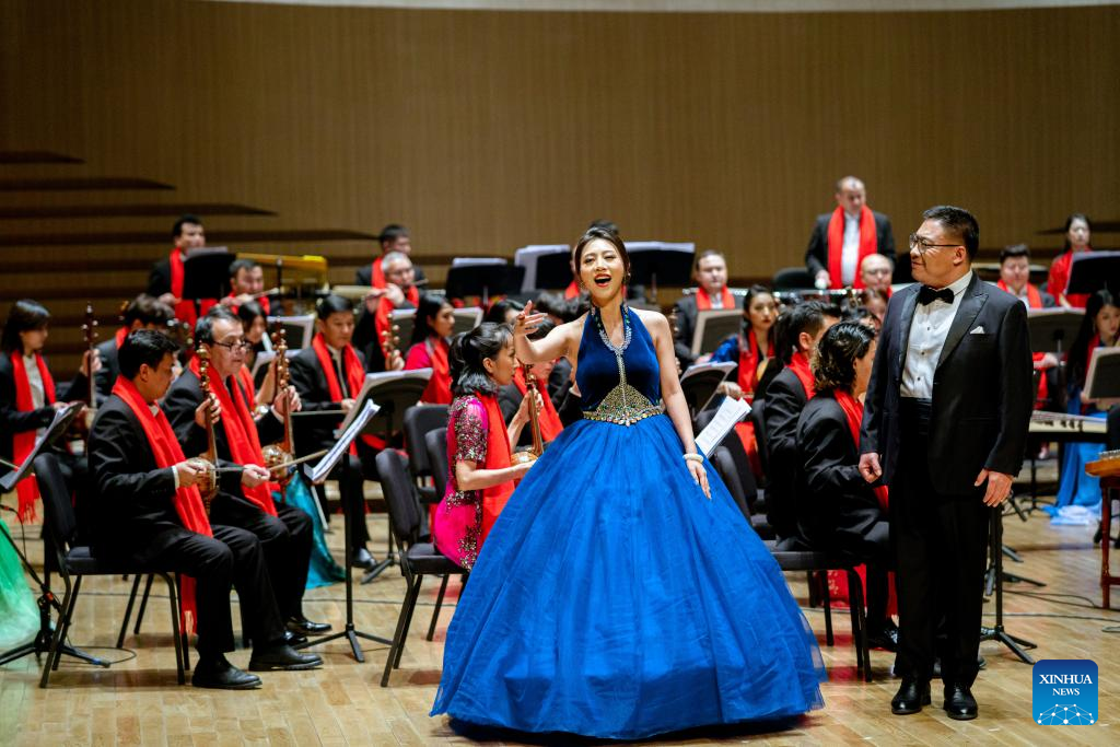 URUMQI, Jan. 25 (Xinhua) -- On hearing the duet of the Kazakh folk song "A Lovely Rose" and Italian opera "Nessun Dorma" (None Shall Sleep), Xu Dandan was a bit surprised, then soon enchanted by the chemistry generated from the unfrequent combination, especially the accompaniment of the gijak, a traditional Uygur bowed string instrument.