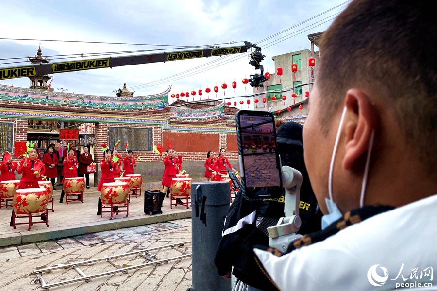A vlogger livestreams performances in Jiangdong village in Putian city, southeast China’s Fujian Province. (People’s Daily Online/Lin Ying)