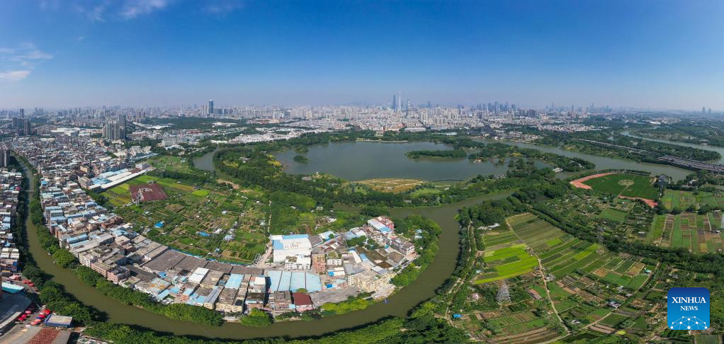 This aerial photo taken on Oct. 26, 2021 shows a view of Haizhu Wetland in Guangzhou, south China's Guangdong Province. (Xinhua/Liu Dawei)