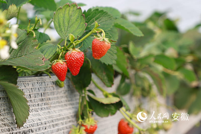 Strawberries grow in Zhu and Li’s greenhouse. (People’s Daily Online/Zhang Jun)