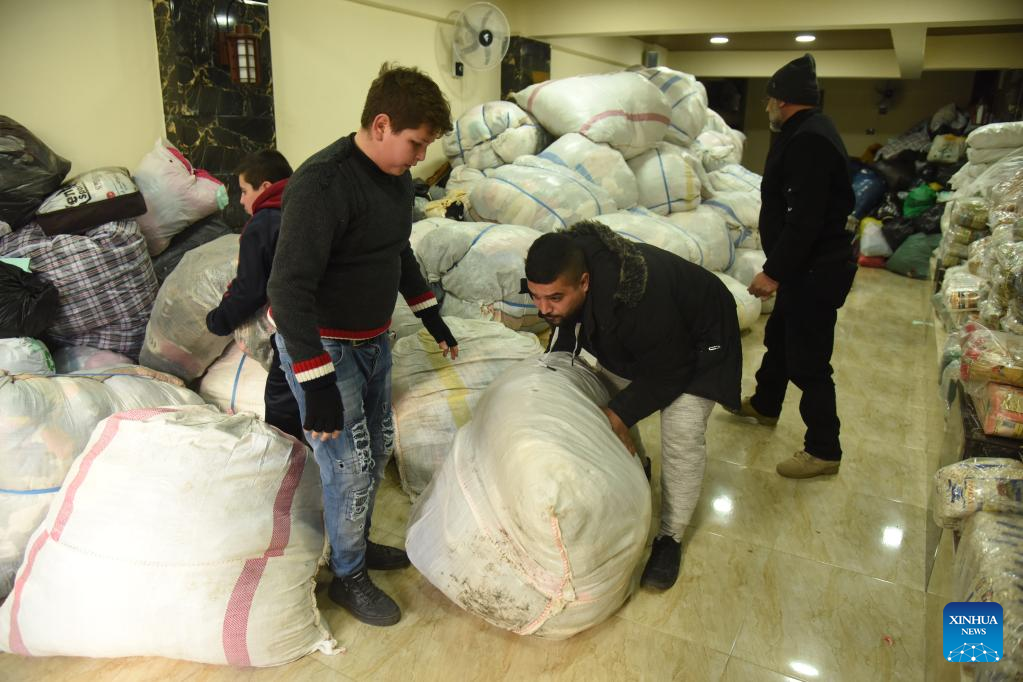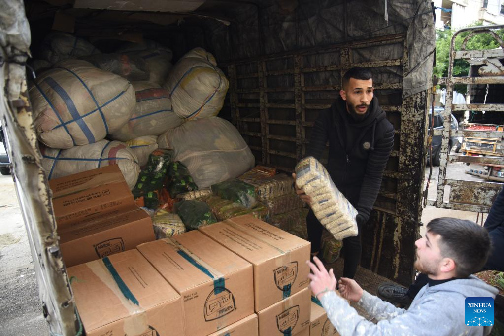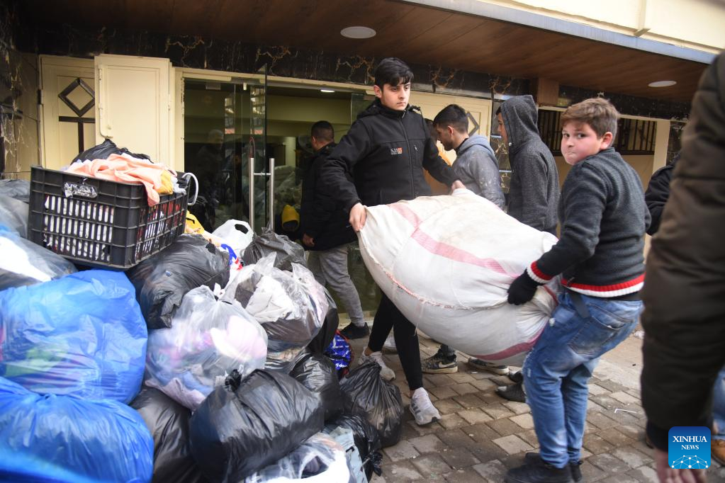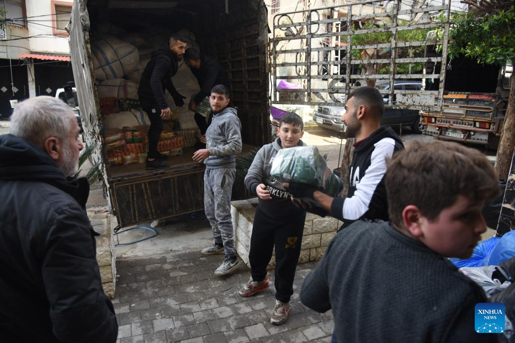 Volunteers transfer donations for quake-hit Syrian city of Latakia in Tripoli, Lebanon, on Feb. 9, 2023. According to data released by authorities and rescuers, the death toll from Monday's devastating earthquake in Trkiye and Syria has surpassed 17,000. (Photo by Khaled Habashiti/Xinhua)