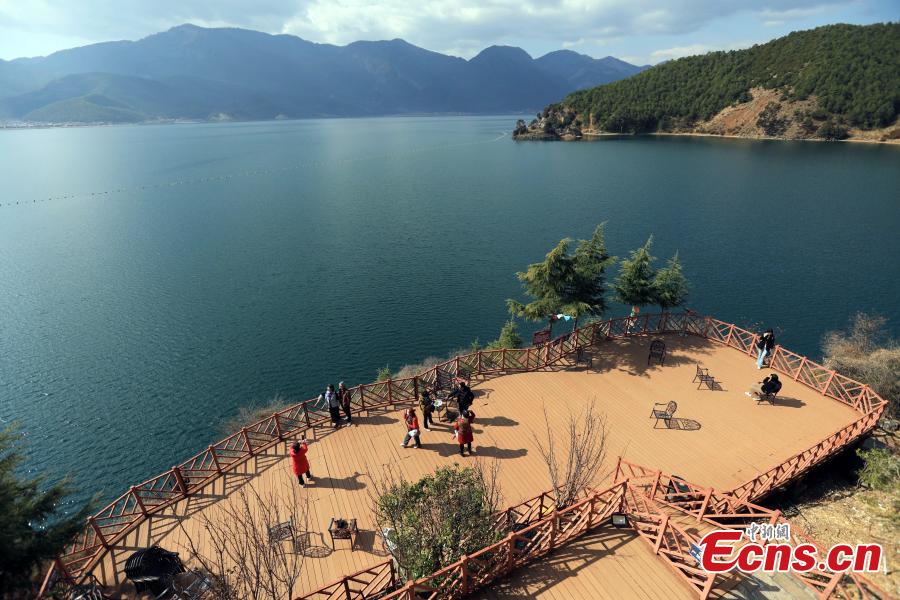Tourists take a tour on an island in the Lugu Lake, Yanyuan, southwest China's Sichuan Province, Feb. 16, 2023. (Photo: China News Service/Wang Lei)