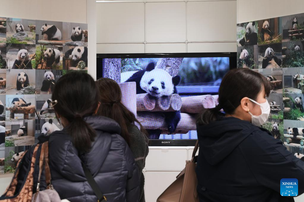 People visit a photographic exhibition of giant panda Xiang Xiang in Tokyo, Japan, Feb. 17, 2023. Xiang Xiang will be sent home to China on Tuesday. (Xinhua/Zhang Xiaoyu)