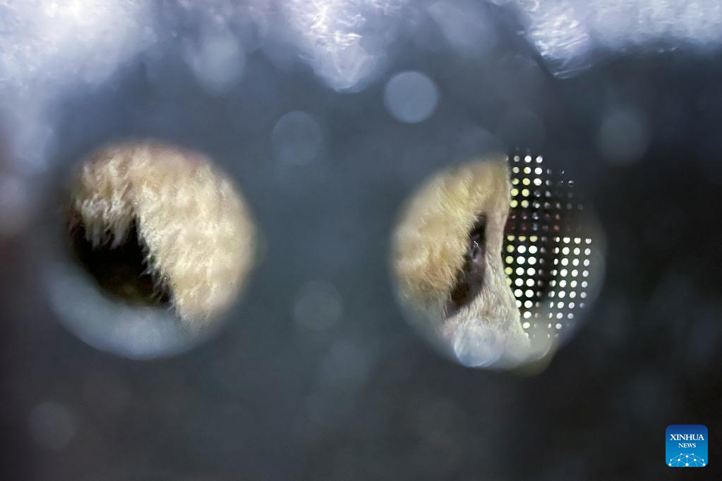 This photo taken with a mobile phone shows the Japan-born giant panda Xiang Xiang arriving at Chengdu Shuangliu International Airport in southwest China's Sichuan Province, Feb. 21, 2022. (Xinhua/Shen Bohan)