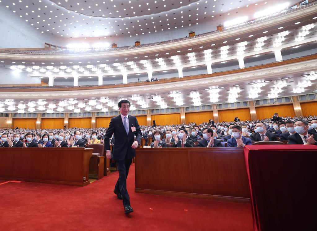 Wang Huning, who presides over a presidium meeting of the first session of the 14th National Committee of the Chinese People's Political Consultative Conference (CPPCC), walks to the rostrum during a preparatory meeting for the first session of the 14th CPPCC National Committee at the Great Hall of the People in Beijing, capital of China, March 3, 2023. (Xinhua/Wang Ye)