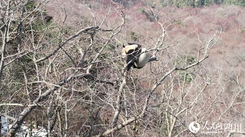 While passing an area in Motianling mountain, which lies at the junction of Sichuan Province, northwest China's Shaanxi Province and Gansu Province, the team saw a white figure in a tree not far away. And Ma, who has patrolled extensively at the nature reserve, immediately concluded that what he saw was a giant panda.