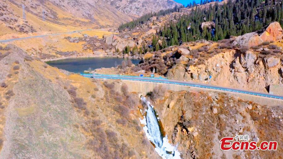 Duku highway, one of China's most dramatic roads, snakes through a snow-covered mountain in northwest China's Xinjiang Uygur Autonomous Region in March. (Photo: China News Service/Hu Renjie)
