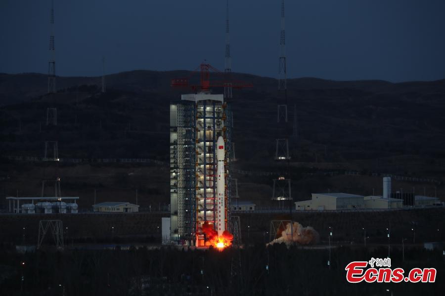A Long March-4C rocket, carrying Tianhui-6 A and B satellites, blasts off from the Taiyuan Satellite Launch Center in north China's Shanxi Province, March 10, 2023. (Photo: China News Service/Zheng Bin)