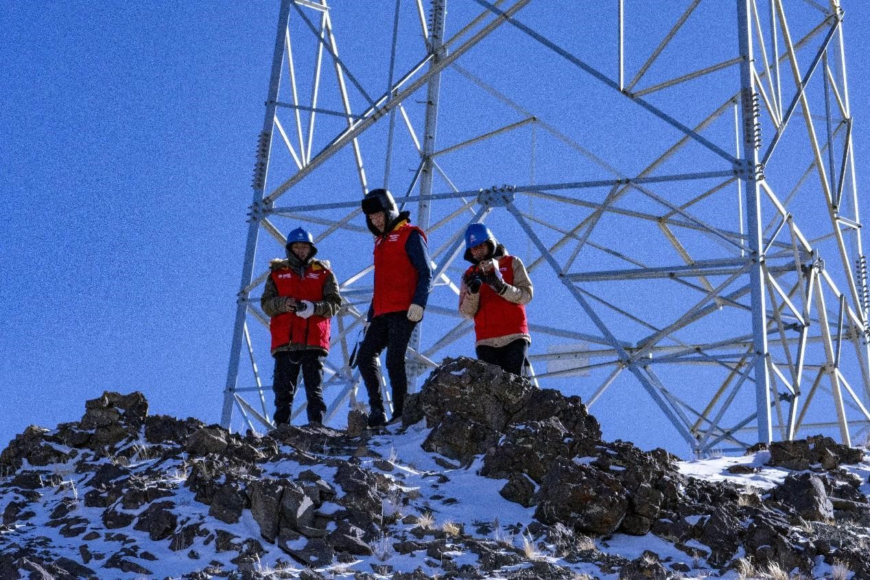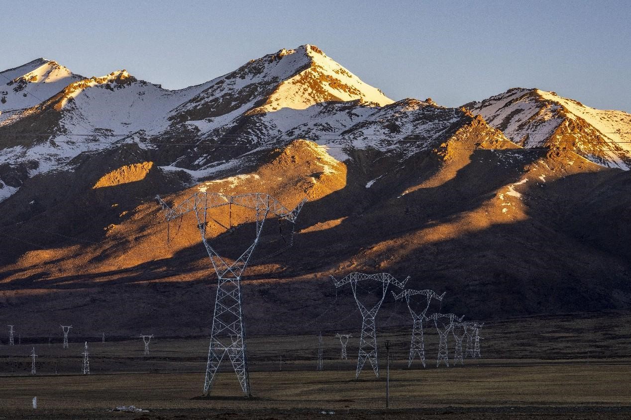 On the top of snow-covered mountains with an altitude of over 5,000 meters in the suburbs of Gar county, Ngari prefecture, southwest China's Tibet autonomous region, stand a number of gigantic transmission towers, which are there to ensure stable power supply for families at the foot of the mountains and beyond.