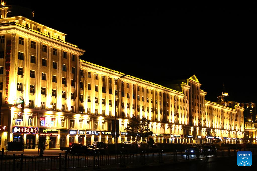 This photo taken on March 15, 2023 shows the night scenery of Manzhouli in north China's Inner Mongolia Autonomous Region. (Xinhua/Wang Kaiyan)