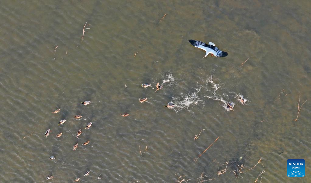 This photo taken on March 15, 2023 shows migrant birds at Huanzidong wetland in Faku County, northeast China's Liaoning Province. (Xinhua/Yang Qing)