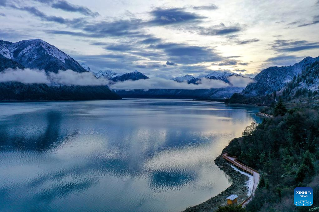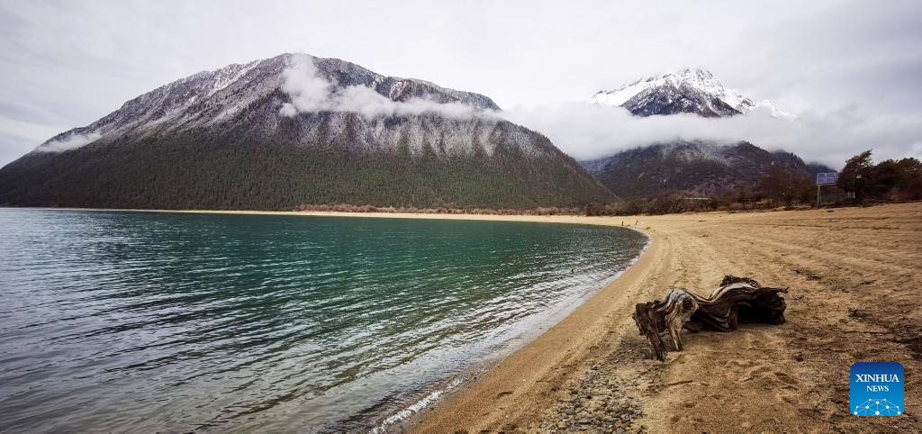 This photo taken with a mobile phone shows the scenery of Basum Lake after snow in the city of Nyingchi, southwest China's Tibet Autonomous Region, March 19, 2023. (Xinhua/Shen Hongbing)
