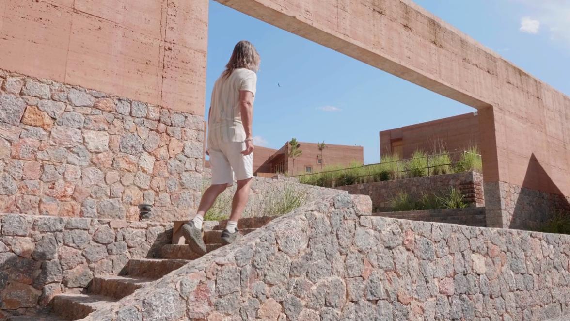 Brian Linden walks up the stairs of Linden Center in Dali, southwest China's Yunnan Province. (Photo provided by the interviewee).