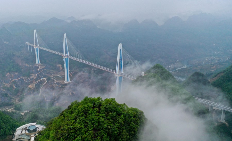GUIYANG, April 15 (Xinhua) -- Bridges are an unmistakable feature of the transportation infrastructure in Guizhou. With 92.5 percent of its area covered by mountains and hills, the province has built nearly 30,000 bridges since the late 1970s and is now home to nearly half of the 100 tallest bridges in the world.