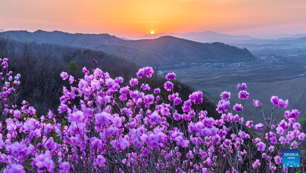 This photo taken on April 20, 2023 shows an azalea scenic spot in Huangling Village of Xiuyan Man Autonomous County, northeast China's Liaoning Province. (Xinhua/Yang Qing)