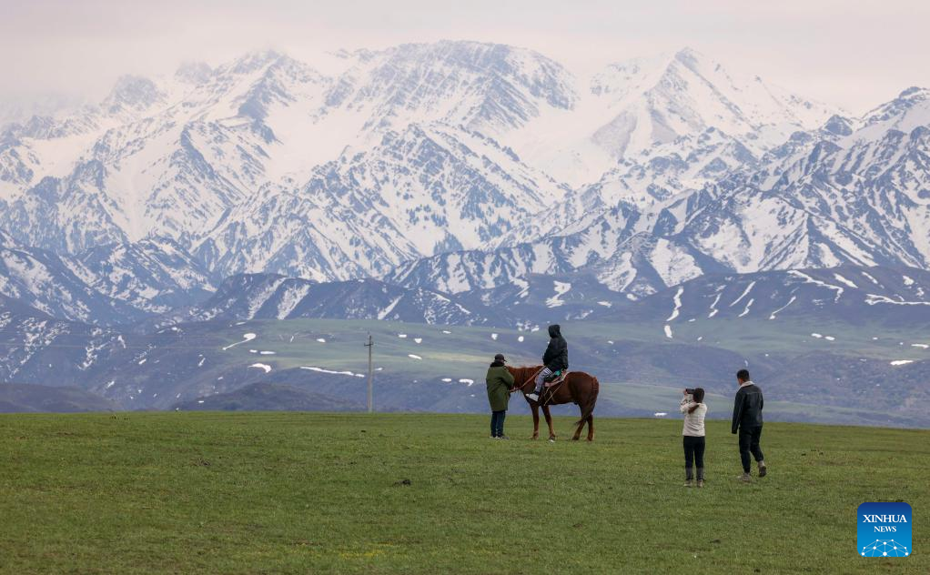 Tourists visit a prairie in the Barlik Mountain area in Yumin County, northwest China's Xinjiang Uygur Autonomous Region, May 2, 2023. (Photo by Zhang Du/Xinhua)
