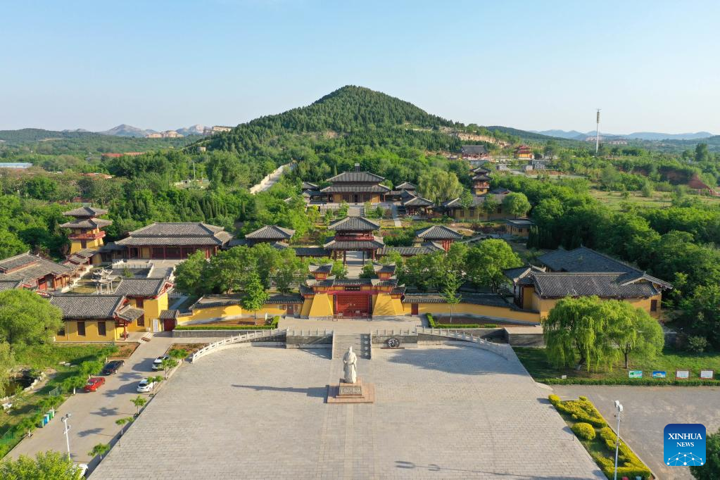 This aerial photo taken on May 8, 2023 shows a view of Guan Zhong Memorial Hall in Linzi District of Zibo, east China's Shandong Province. (Xinhua/Zhu Zheng)