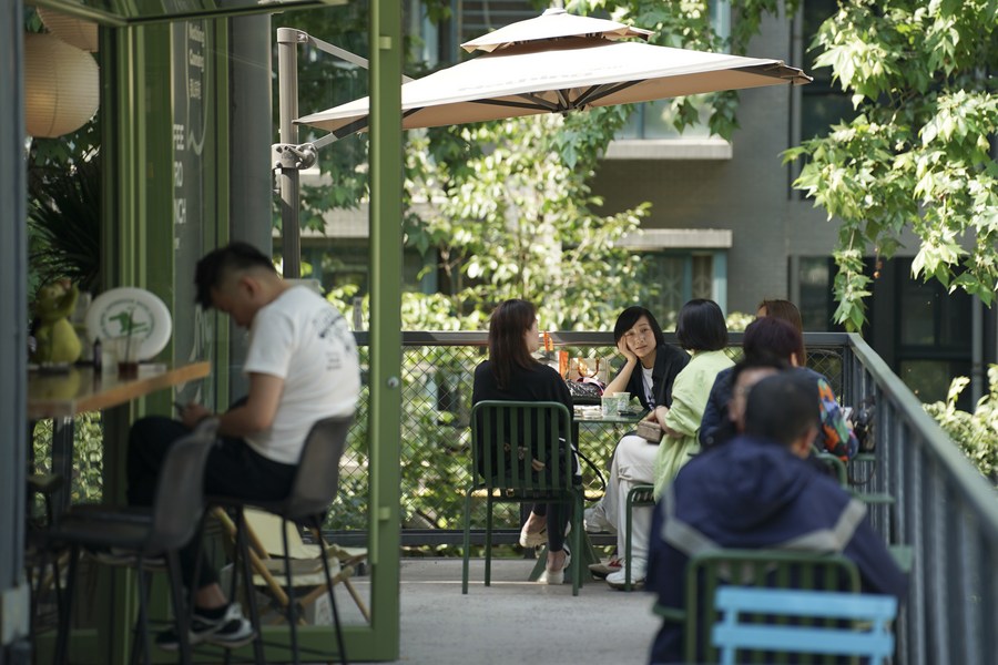 People are seen at a cafe in Xi'an, northwest China's Shaanxi Province, May 11, 2023. (Xinhua/Shao Rui)