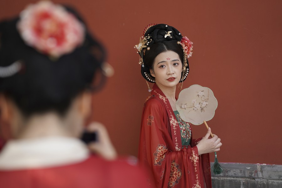 An actress performs at the Datang Everbright City scenic area in Xi'an, northwest China's Shaanxi Province, July 18, 2022. (Xinhua/Shao Rui)■