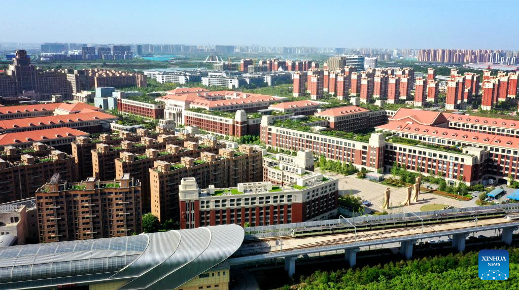 This aerial photo taken on April 29, 2023 shows a view of Xixian New Area in Xi'an, northwest China's Shaanxi Province. (Xinhua/Liu Xiao)