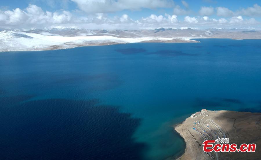 Breathtaking scenery of the Puma Yumco Lake with an altitude of about 5,000 meters in Shannan City, southwest China's Tibet Autonomous Region. Covering an area of 292 square kilometers , Puma Yumco literally means 'The Blue Jewel which is floating in the sky'. (Photo: China News Service/Li Lin)