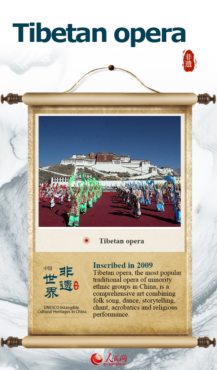 The item, "Tibetan opera" was inscribed on UNESCO's Representative List of the Intangible Cultural Heritage of Humanity in 2009.