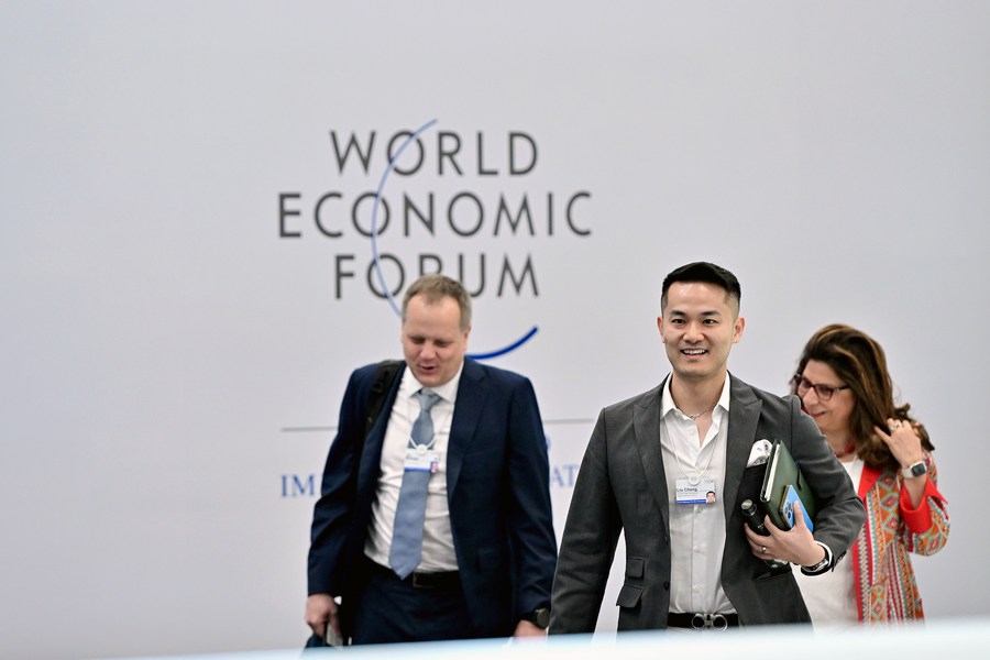 Participants enter the venue of the 14th Annual Meeting of the New Champions, also known as the Summer Davos, in north China's Tianjin Municipality, June 27, 2023. (Xinhua/Sun Fanyue)