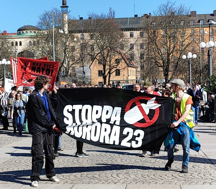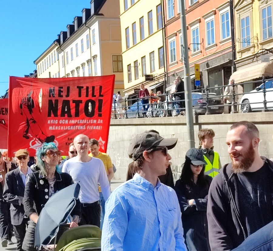 "Military alliances do not build peace. Military rearmament, on the contrary, creates the conditions for war," a protester said in Sweden.