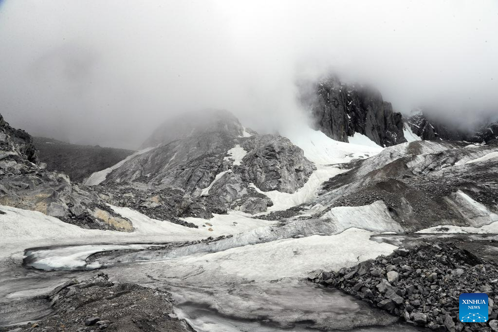 This photo taken on June 19, 2023 shows a view of the Baishui River No. 1 Glacier on the Yulong Snow Mountain in Lijiang City, southwest China's Yunnan Province. (Xinhua/Tian Weiwei)