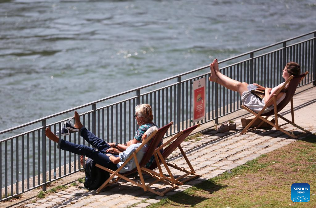 A couple takes a rest by the Seine River in Paris, France, June 28, 2023. (Xinhua/Gao Jing)