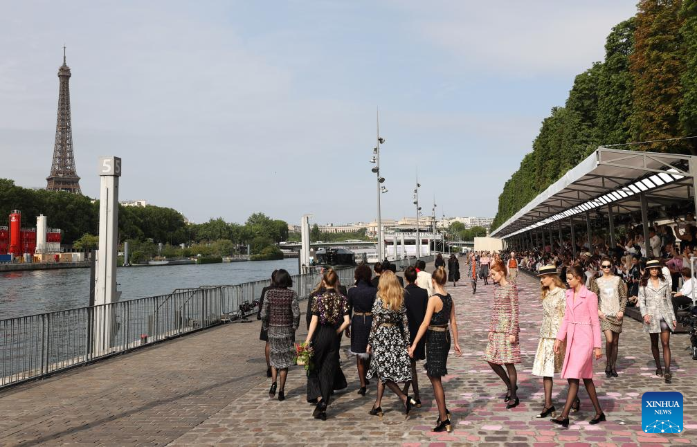 A fashion show is held by the Seine River in Paris, France, July 4, 2023. (Xinhua/Gao Jing)