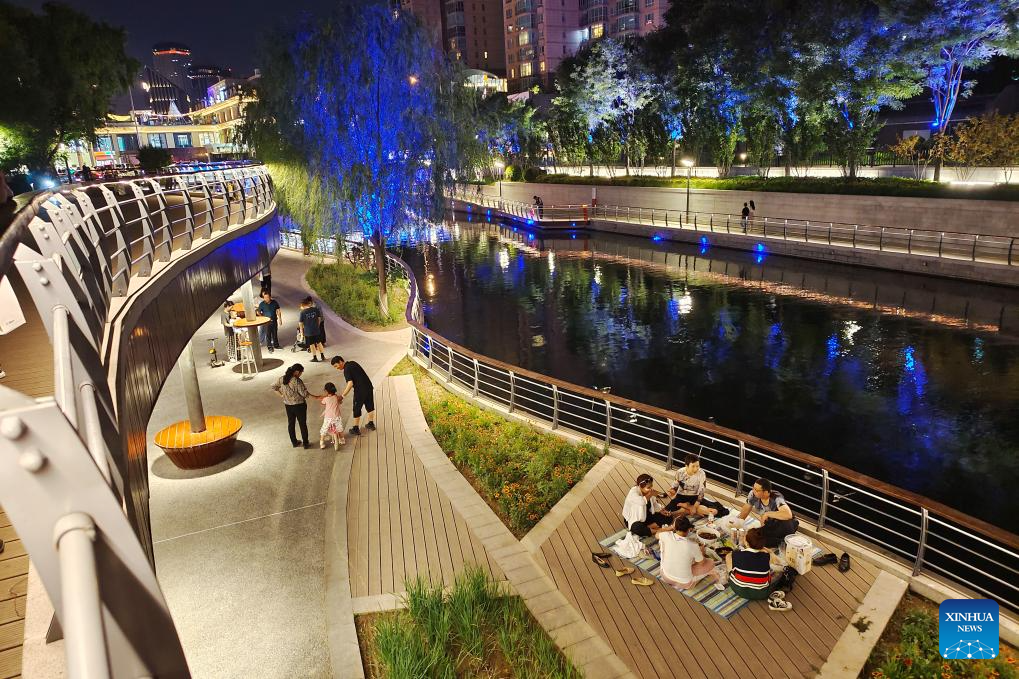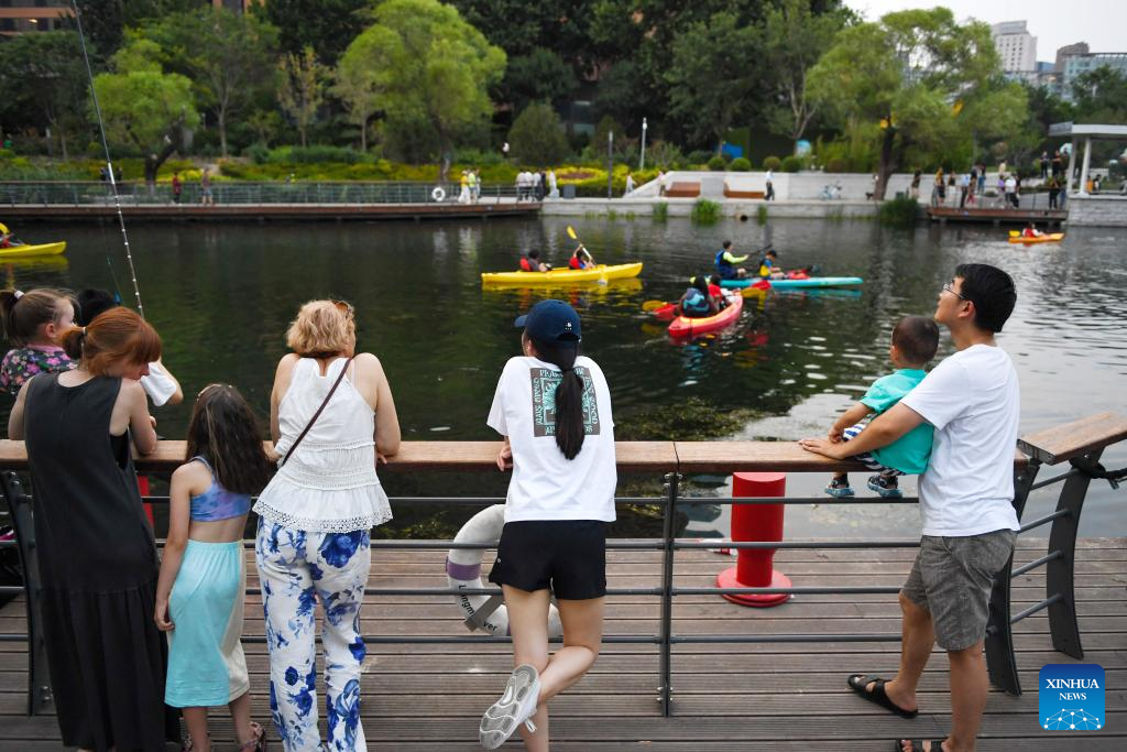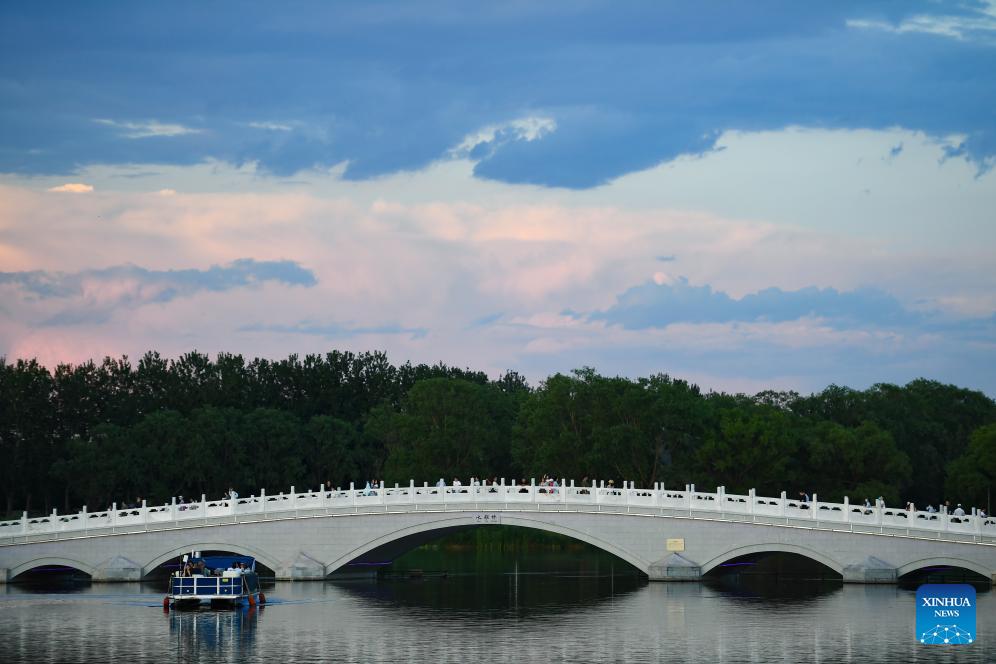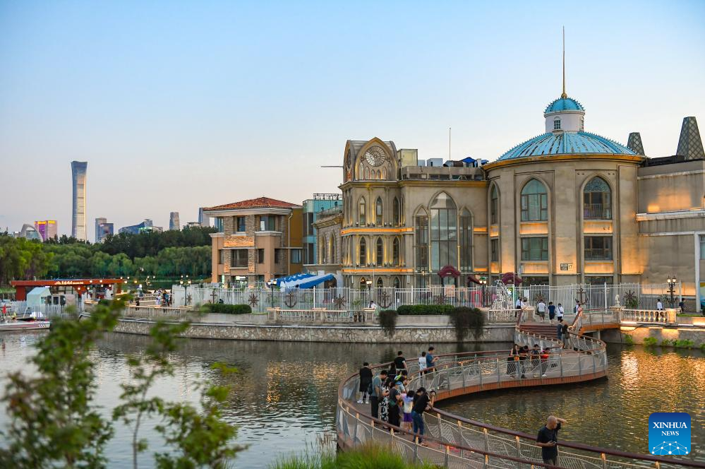 Tourists enjoy the view of Liangma River in Beijing, capital of China, June 23, 2023. (Xinhua/Ju Huanzong)