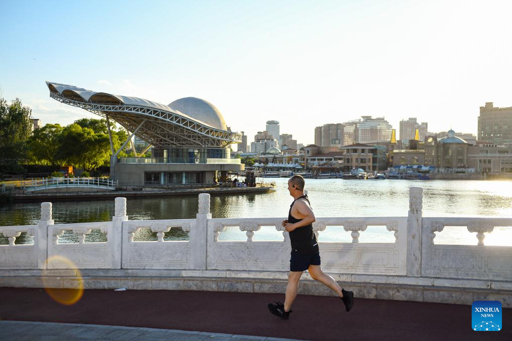 A man runs along the Liangma River in Beijing, capital of China, June 20, 2023. (Xinhua/Chen Zhonghao)
