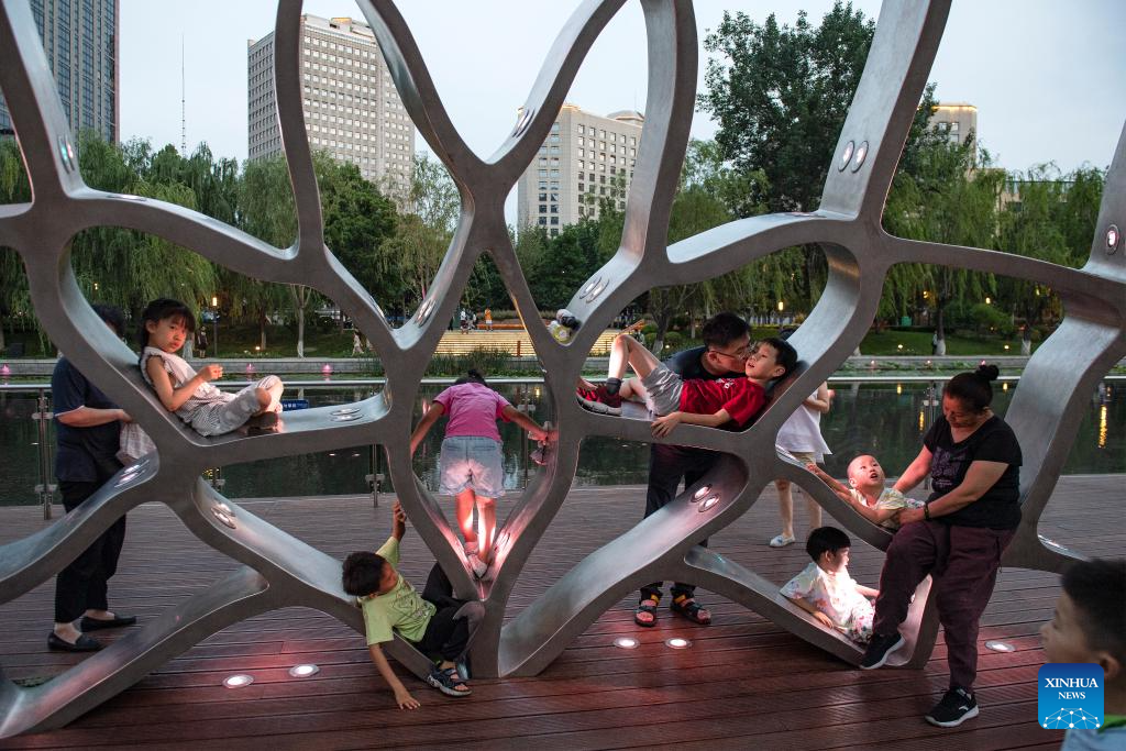 People have fun by the Liangma River in Beijing, capital of China, June 25, 2023. (Xinhua/Sun Ruibo)